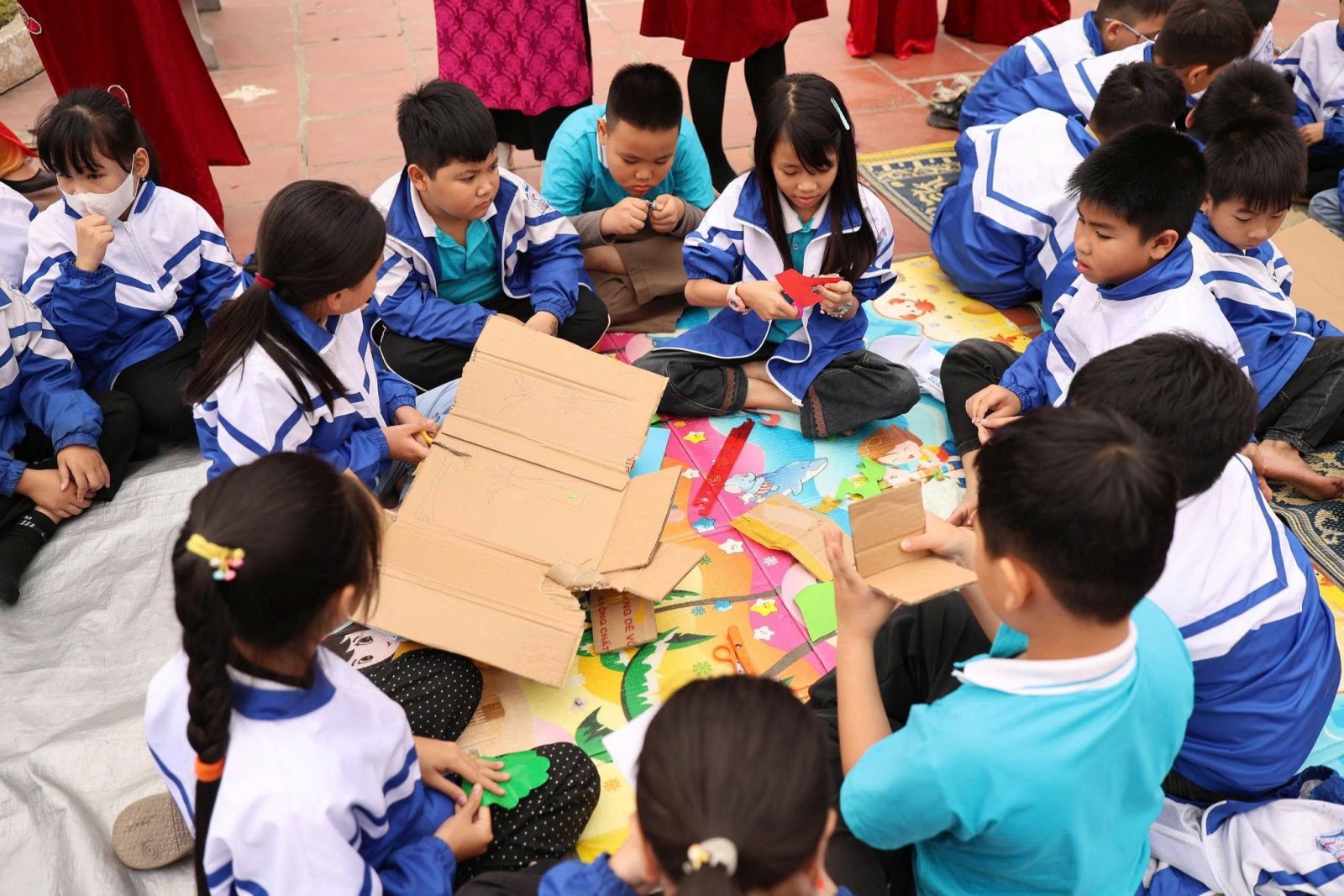 Điểm nhấn ấn tượng nhất của ngày hội chính là phần thi chế tạo sản phẩm STEM trực tiếp. Khác với những cuộc thi chỉ dành cho một nhóm nhỏ, ngày hội năm nay đã tạo nên một không gian sáng tạo đồng loạt khi tất cả học sinh toàn trường đều được trực tiếp tham gia trải nghiệm. Mỗi khối lớp mang đến một mảng màu riêng biệt với những thử thách phù hợp với lứa tuổi. Dưới bàn tay khéo léo của các em, những vật liệu tái chế tưởng chừng bỏ đi như bìa các-tông, vỏ chai nhựa hay nắp nút chai đã được “phù phép” thành những mô hình đầy ấn tượng.